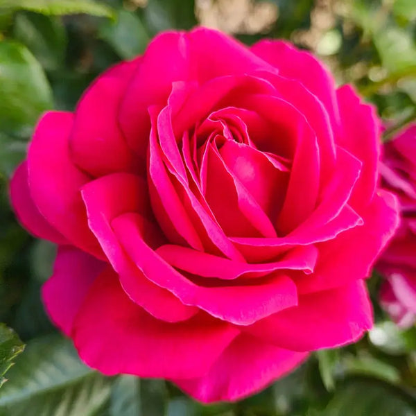 A fabulous, classic rose that delivers year after year. Large, spiraling, high centered flowers in a perfect deep reddish pink, releasing a strong, heavenly classic tea rose fragrance. Repeat blooming flowers open singly on long, strong stems that are perfect for cutting and long lasting in a vase, against deep green, glossy foliage that has wonderful disease resistance (especially against rust and powdery mildew).