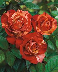 Striking blooms cover this vigorous climber in big, generous clusters. Large, deep green glossy foliage grows on the sturdy canes creating an upright structure to show off the stunning and unusual cream striped, smoky orange blossoms. The unusual color makes this rose a show-stopping topic of conversation. Plant it near an arbor or trellis and let it climb! Climbs 10-12'.