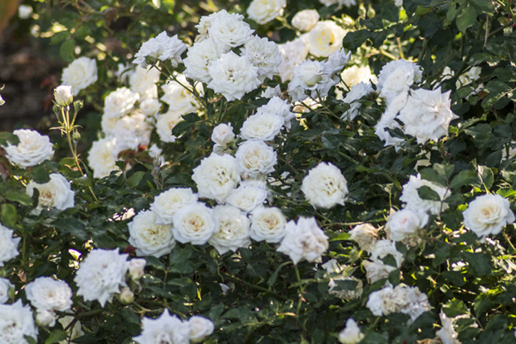 Abundant ivory blooms shine against the glossy dark green, disease resistant foliage on a vigorous, hardy, carefree shrub. Perfect in perennial or shrub borders, along pathways or spilling over a rock wall.